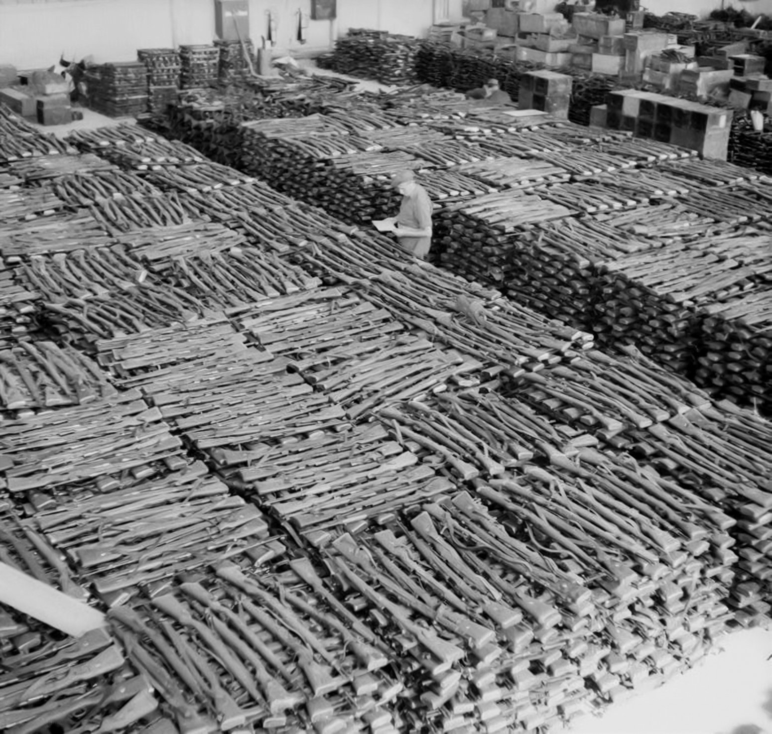 Geplaatst op 30 januari 2026Storeroom holding some of the estimated 30,000 rifles taken from German forces in Norway after their surrender. 0438