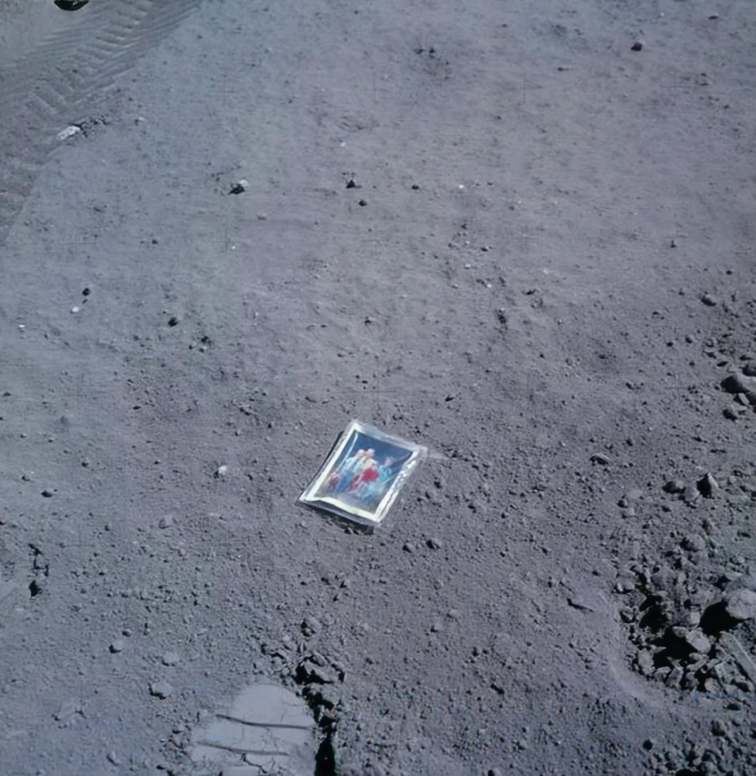 Apollo 16 astronaut Charles Duke left this family photo behind on the moon in 1972.