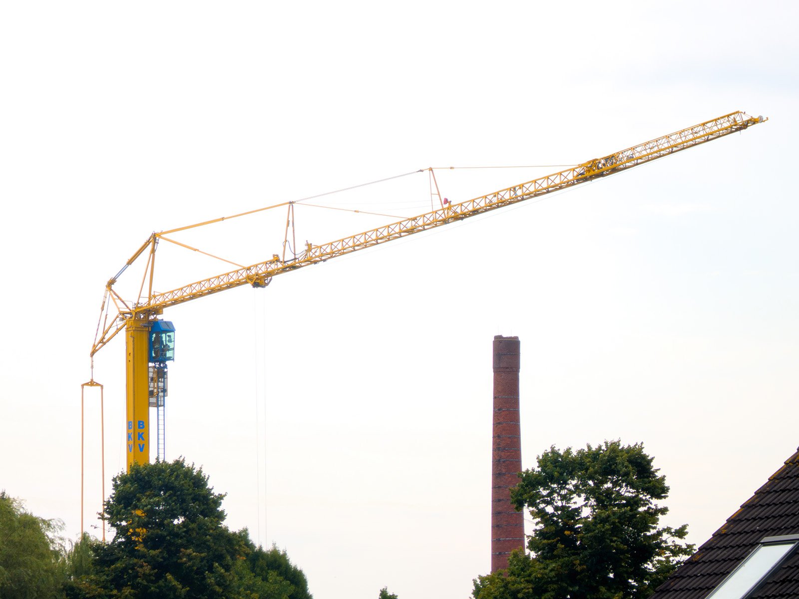 Woensdagmorgen zijn er twee kranen bezig om de balen uit het pand te rijden.