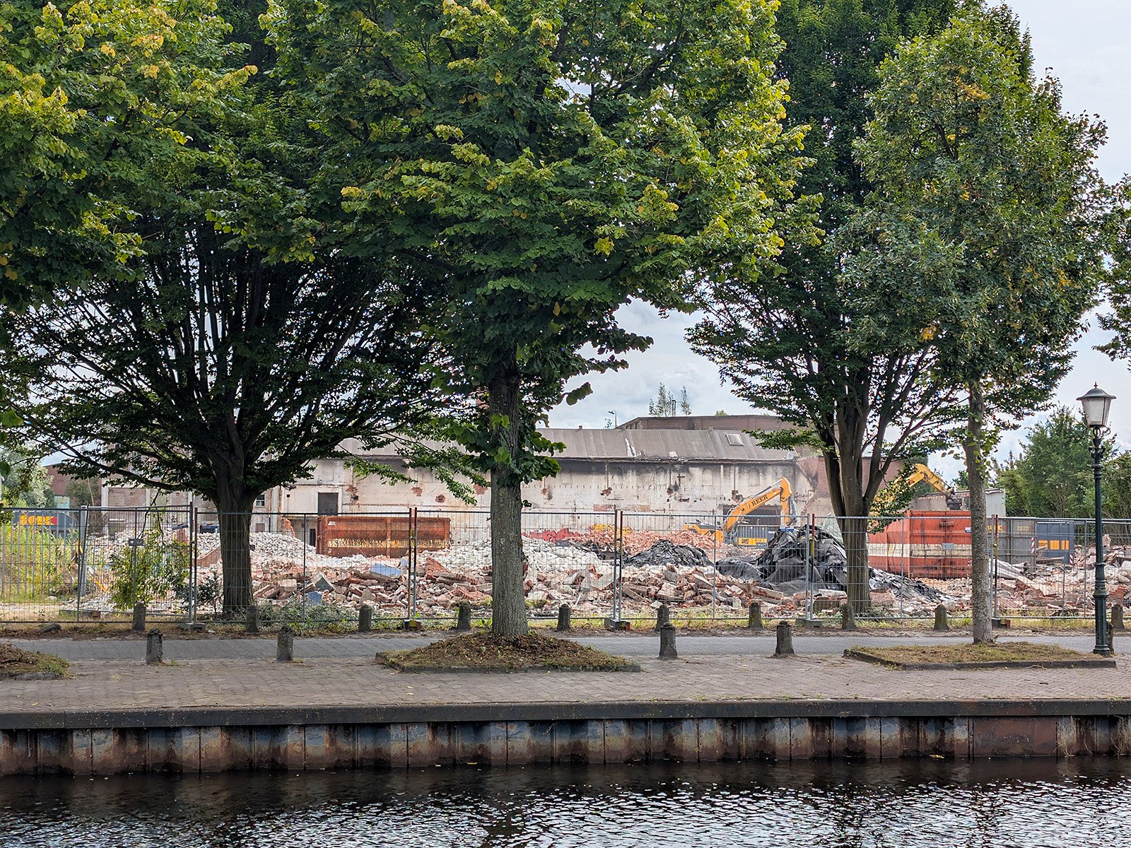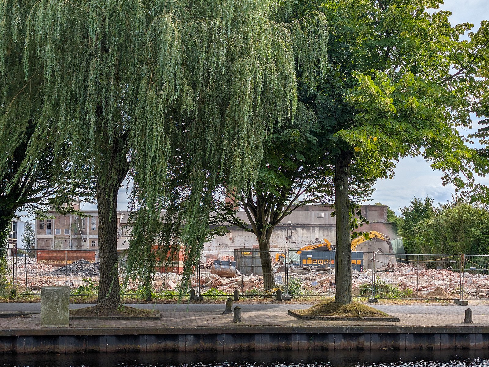 Gemeente Pekela: Bij vezelhennepverwerker HempFlax aan de Hendrik Westerstraat in Oude Pekela wordt met de sloop begonnen van de restanten van de door brand aangetaste gebouwen na de grote brand in mei.