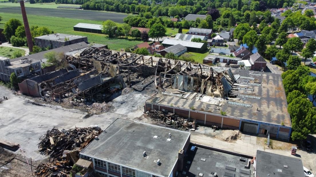 De brandweer laat de brand in de opslagloodsen van hennepverwerker Hempflax in Oude Pekela gecontroleerd uitbranden. De verwachting is dat het nog twee dagen gaat duren voordat de brand in de smeulende puinhopen helemaal uit is.