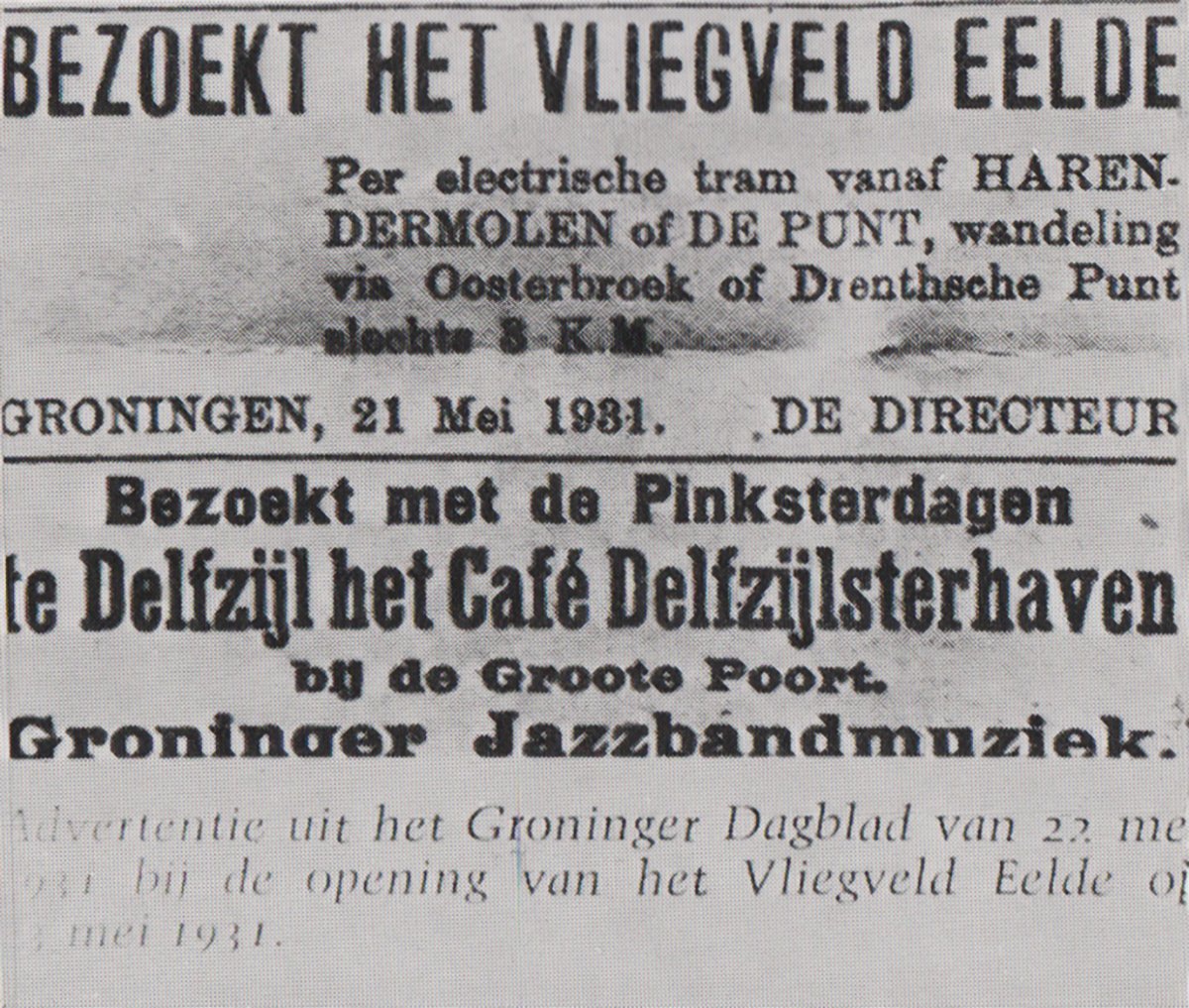 Dit loflied verscheen in de pers enkele dagen na het besluit van de raad van de gemeente Eelde om tot de aanleg van een vliegveld over te gaan in de zomer van 1930.