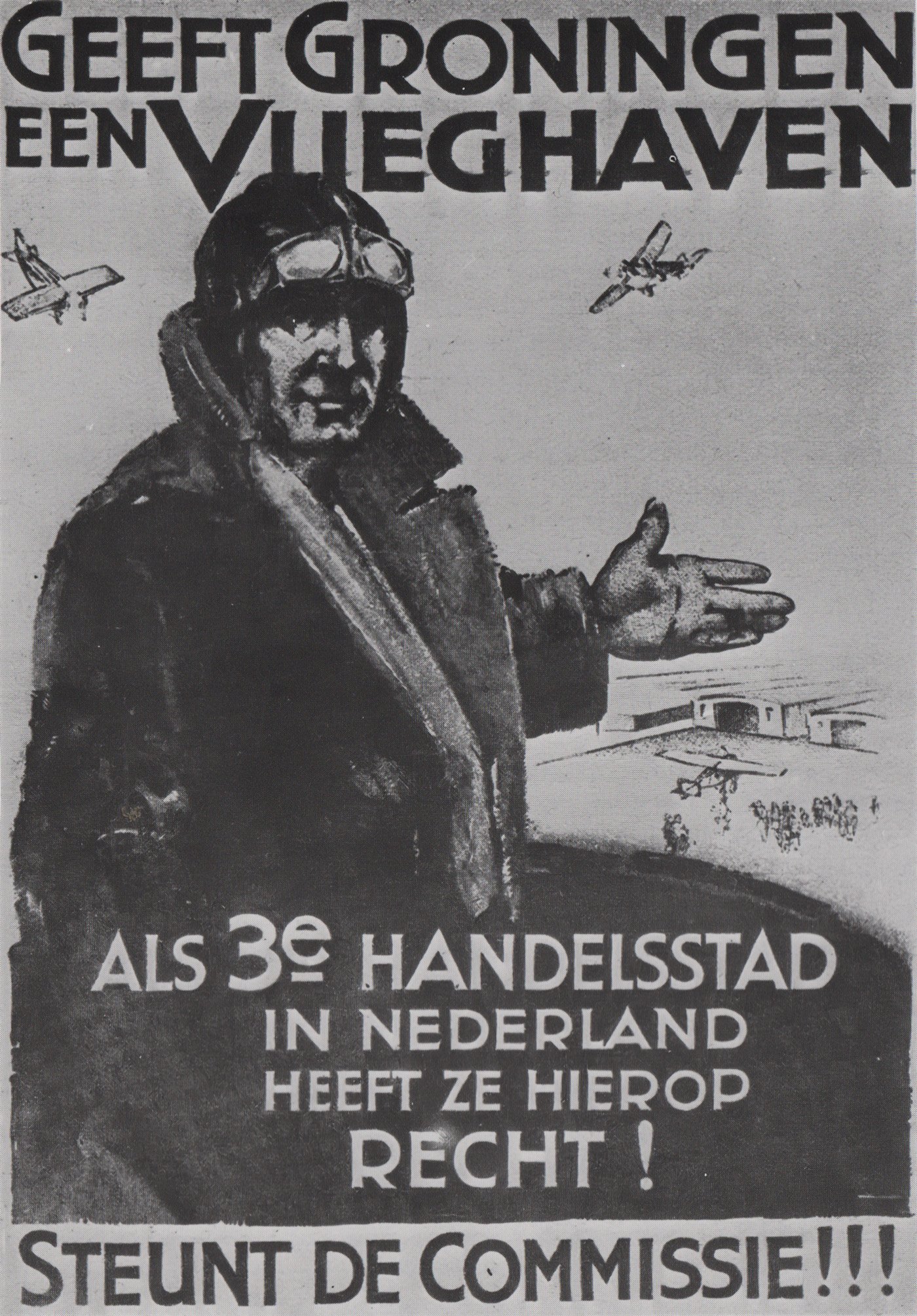 tijd een luchtvaartcomité geïnstalleerd, bestaande uit vooraanstaande Groningers, maar een paar jaar later lezen we over dit comité ‘.. . door verschillende omstandigheden een vrij sluimerend bestaan heeft gevoerd en niet veel werk heeft kunnen verrichten.