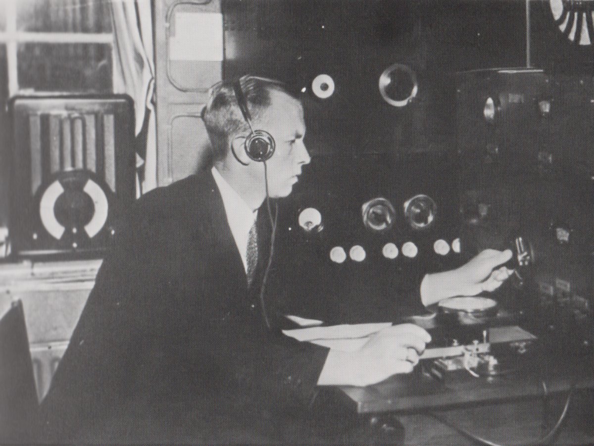 ‘Dekker belde in die periode twee keer per dag een weerbericht door, daarop startte de kist van Amsterdam, gokte er maar op. In die tijd zat ik op Schiphol. Plesman greep toen een F 8, laadde er een zender in en wilde met monteur Hegener en telegrafist Koopmans die zender naar Eelde brengen. Dat alles met toestemming van de direkteur Bureau Luchtvaart. Het ging echter niet door. Hof, onze hoofdinspecteur, was er tegen, het was een rijksmonopolie. Het gevolg van deze aktie was echter wel, dat ik de volgende dag werd overgeplaatst naar Eelde. In juli ’34 ben ik er gekomen. Er was een houten keetje,