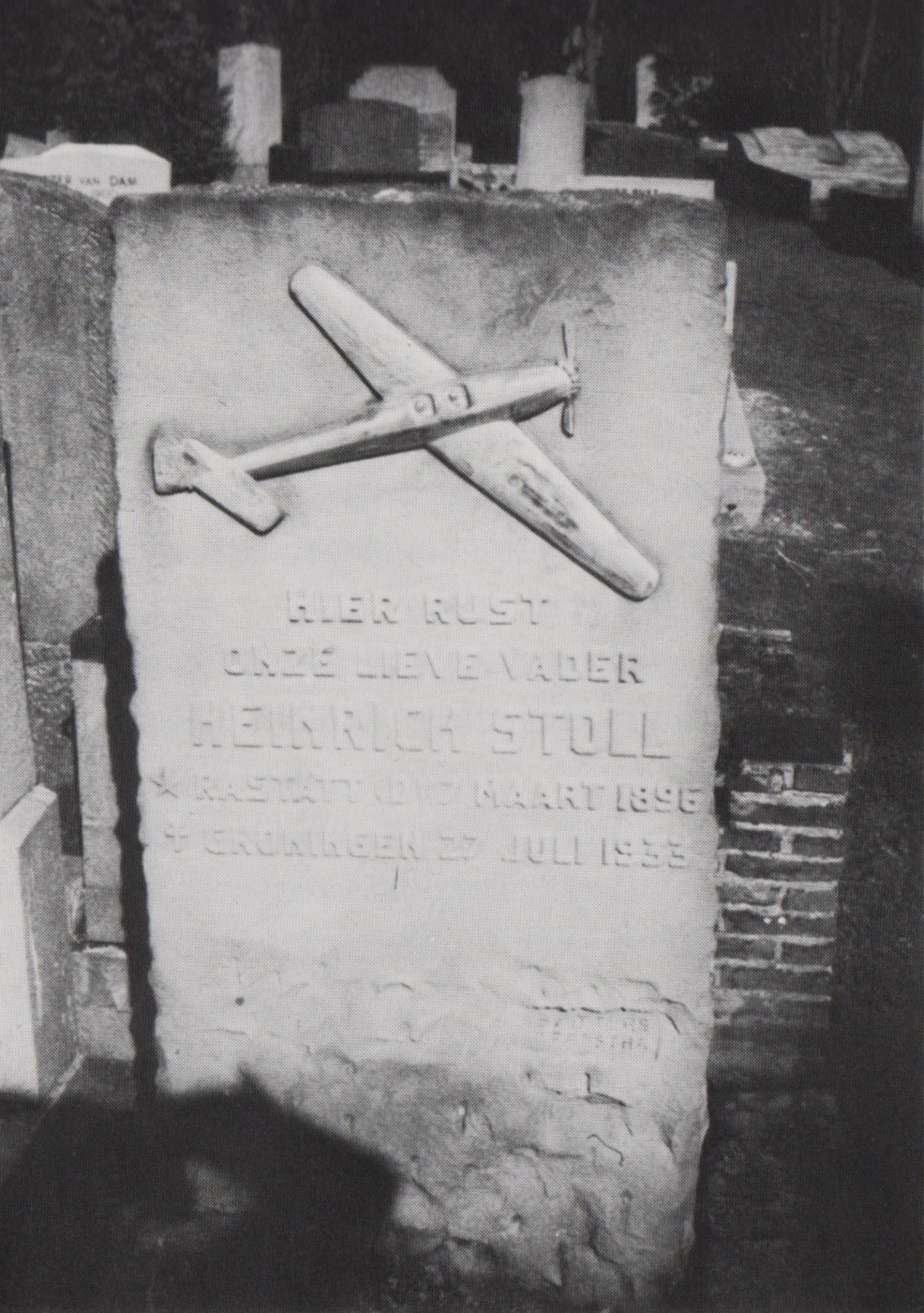 Op zijn graf staat zijn Klemm Zilvermeeuw, de PH-AIG in brons relief afgebeeld.