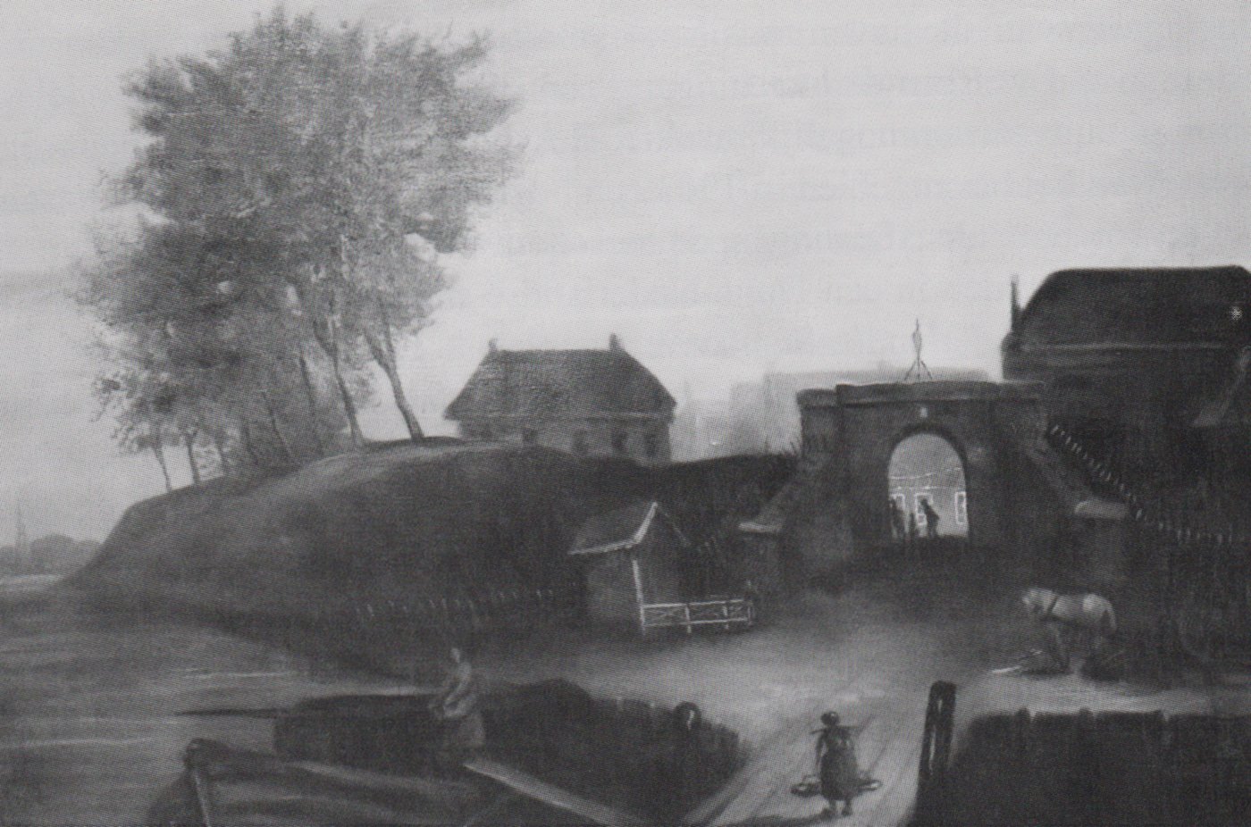 “Wat verder zien we een lang, nogal laag gebouw. Dat is de Franse bakkerij. Daar werd in de Franse tijd brood gebakken voor de soldaten. De ovens zitten er nog in. Het is later wat vertimmerd. En nu woont aan het ene eind de postmeester en in het andere de nieuwe rijksveldwachter, een echte duvelse kerel, die steeds de een of de ander om een ding van niks eraan lapt, en de jongens direct achter de broek zit als ze eens wat uitvreten.