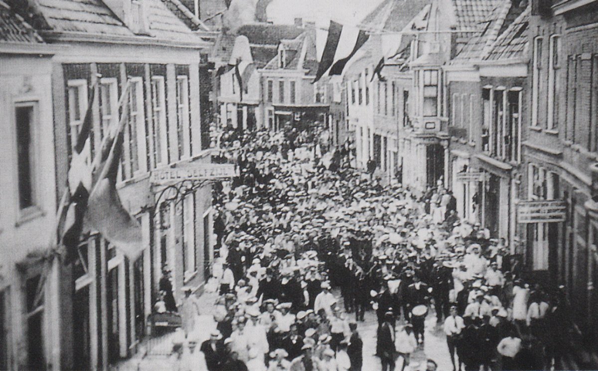 God mensen, wat is er een volk op de optocht afgekomen. De wallen zijn zwart van mensen en aan het hoera roepen komt geen eind. De schepen in de haven hebben allemaal de vlag op en halen die nu een keer of wat op en neer.