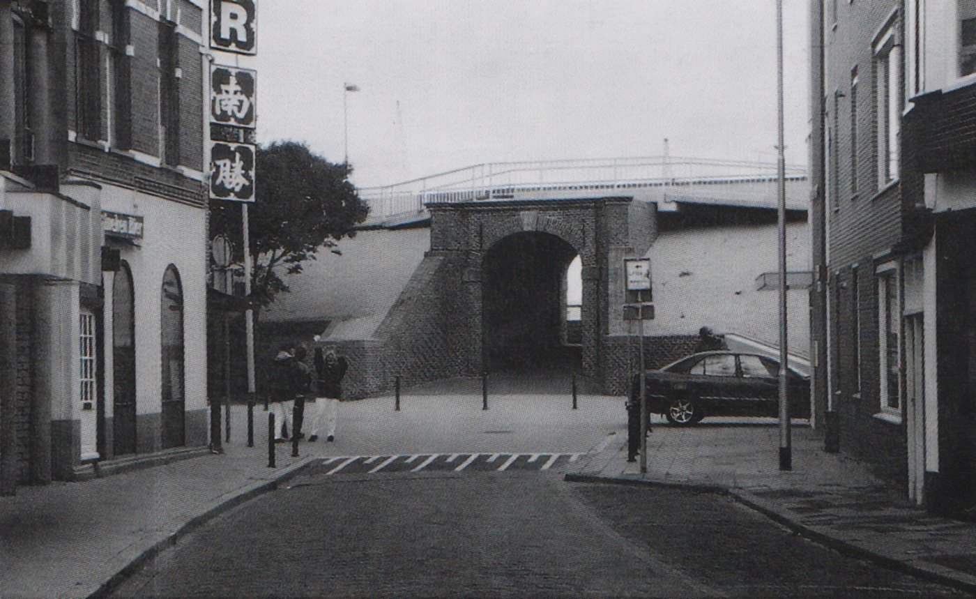We vervolgen onze weg nu niet over de huidige Singel, omdat daar indertijd de voet van de vestingwal lag, maar buigen op het Commandementsplein ‘een woningdiepte’ naar rechts en lopen nu in gedachten linia recta naar de Landstraat, waar ons ‘gedachtenpad’ aansluit op het gangetje tussen herenmodezaak en groenteboer.