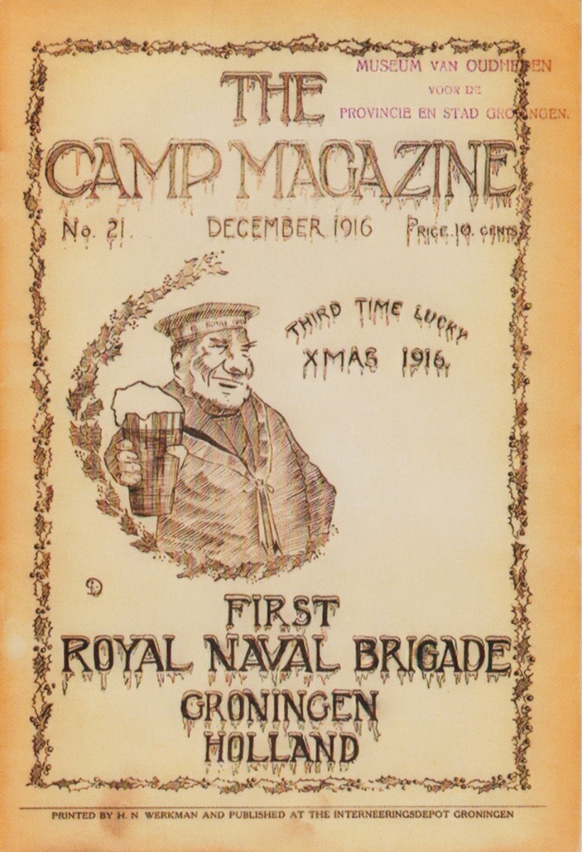 Het Camp Magazine, gedrukt door H.N. Werkman, werd van 1915-1918 uitgegeven door de Britse geïnterneerden in Groningen. De militairen brachten de oorlogsjaren door in een barakkenkamp op het terrein van de Rabenhauptkazerne aan de Hereweg, toepasselijk door hen ‘Timber Town’ gedoopt. De meeste Britten deden in 1914, het eerste jaar van de ‘Grote Oorlog’ , dienst in België. Ze hadden zich in oktober 1914 moeten terugtrekken na de inname van Antwerpen door de Duitsers. Omdat hun ontsnappingsroute was afgesneden, restte ze weinig meer dan de grens van het neutrale Nederland over te steken. Daar werden ze ‘voor de duur van de vijandelijkheden’ geïnterneerd.