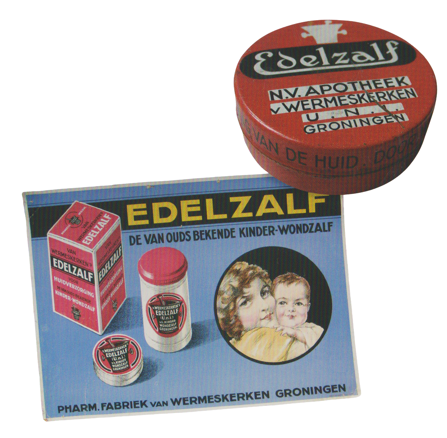 Edelzalf. De zalf wordt al meer dan 150 jaar op ambachtelijke wijze in eigen huis gemaakt en is volgens de apotheek zelf’ een wonderbaarlijk product dat bijzonder goed werkt bij rode babybillen (luieruitslag of -eczeem) en bij kloven in handen en vingers.’
