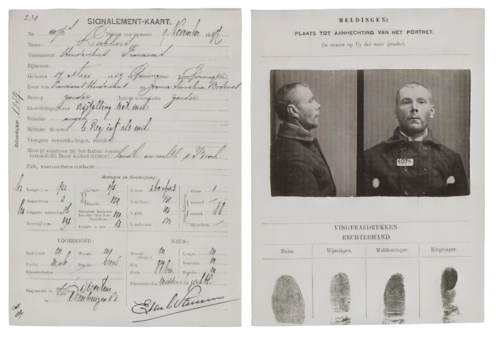 Uit de periode 1896-1901 zijn van Veenhuizen de signalementskaarten van de veroordeelden bewaard gebleven. Zo ook deze van Hendricus Franciscus Lubbers uit de stad Groningen, een oudoom van de latere premier.