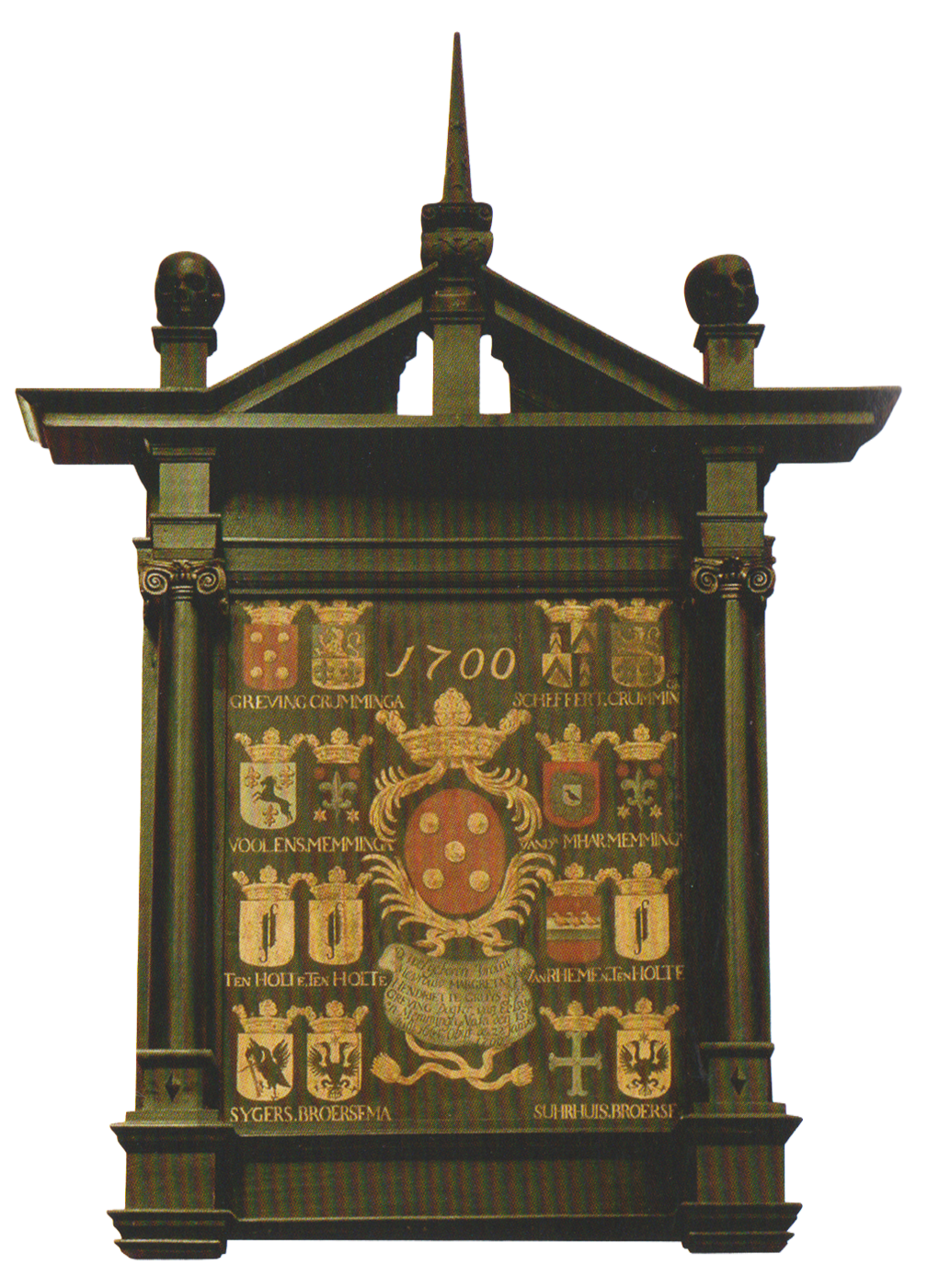 Na de dood van een borgheer of een lid van diens gezin, werd door een familielid een rouwbord besteld dat de herinnering aan de overledene levend moest houden. Het bord hing eerst boven de deur van de borg en werd later opgehangen in de kerk. Met het steeds fraaier – en dus duurder – worden van de rouwborden in de achttiende eeuw gebeurde het ook wel dat voor boven de toegang van het adellijk huis een eenvoudiger bord werd vervaardigd naast een weelderiger exemplaar bestemd voor de kerk.