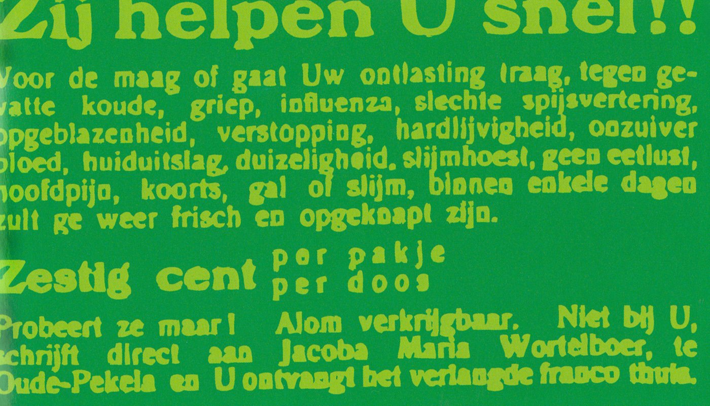 Koorts, duizeligheid, hoofdpijn, uitslag, verstopping: er is haast geen aandoening te bedenken waartegen Wortelboer’s Kruiden niet zou helpen.