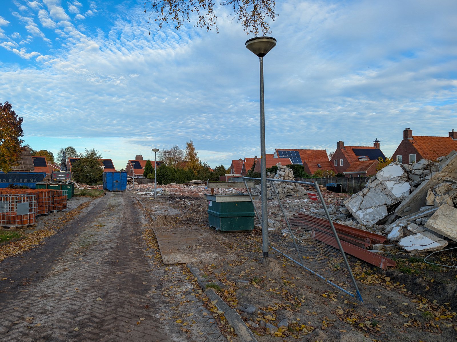 De oude huizen zijn klein, te klein zelfs om ze fatsoenlijk te renoveren naar de wensen van deze tijd, zegt Vissering. Van Klaveren: „Toen mijn dochter klein was woonde daar een vriendinnetje van haar. Dat is twintig jaar geleden en voor die tijd waren de huizen al klein.”Tot 2030 wil Pekela driehonderd nieuwe woningen bouwen. In de jaren daarna moeten er nog eens 300 komen. Even voor het beeld: dat is 10 procent van de totale woningvoorraad in de hele gemeente. Dat is nodig ook, want er is veel vraag naar nieuwe huizen.Over een half jaar is De Rozenhof aan de beurt. Sneller kan niet. Pas als alle huurders een nieuw onderkomen hebben gaat de sloopkogel door het hofje.
