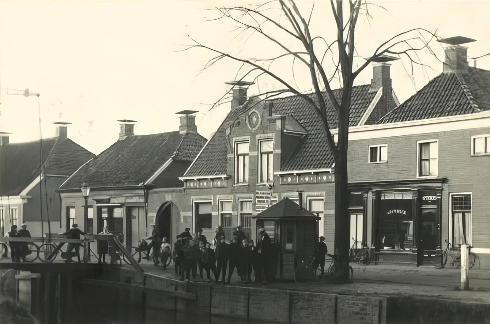 De Kroonbrug met rechts metaaldoekweverij Drenth.