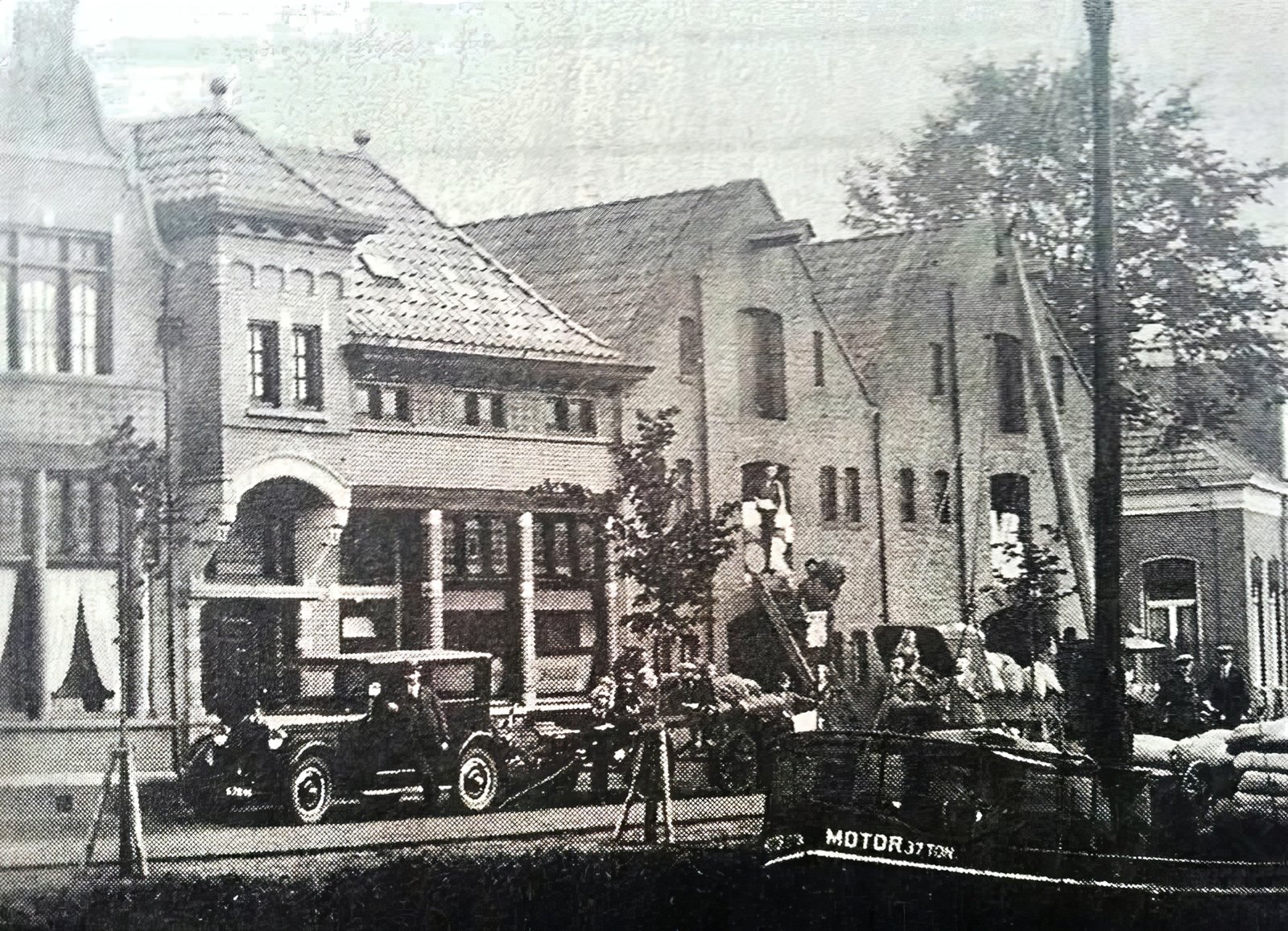 Links vooraan oude gemeentehuis.