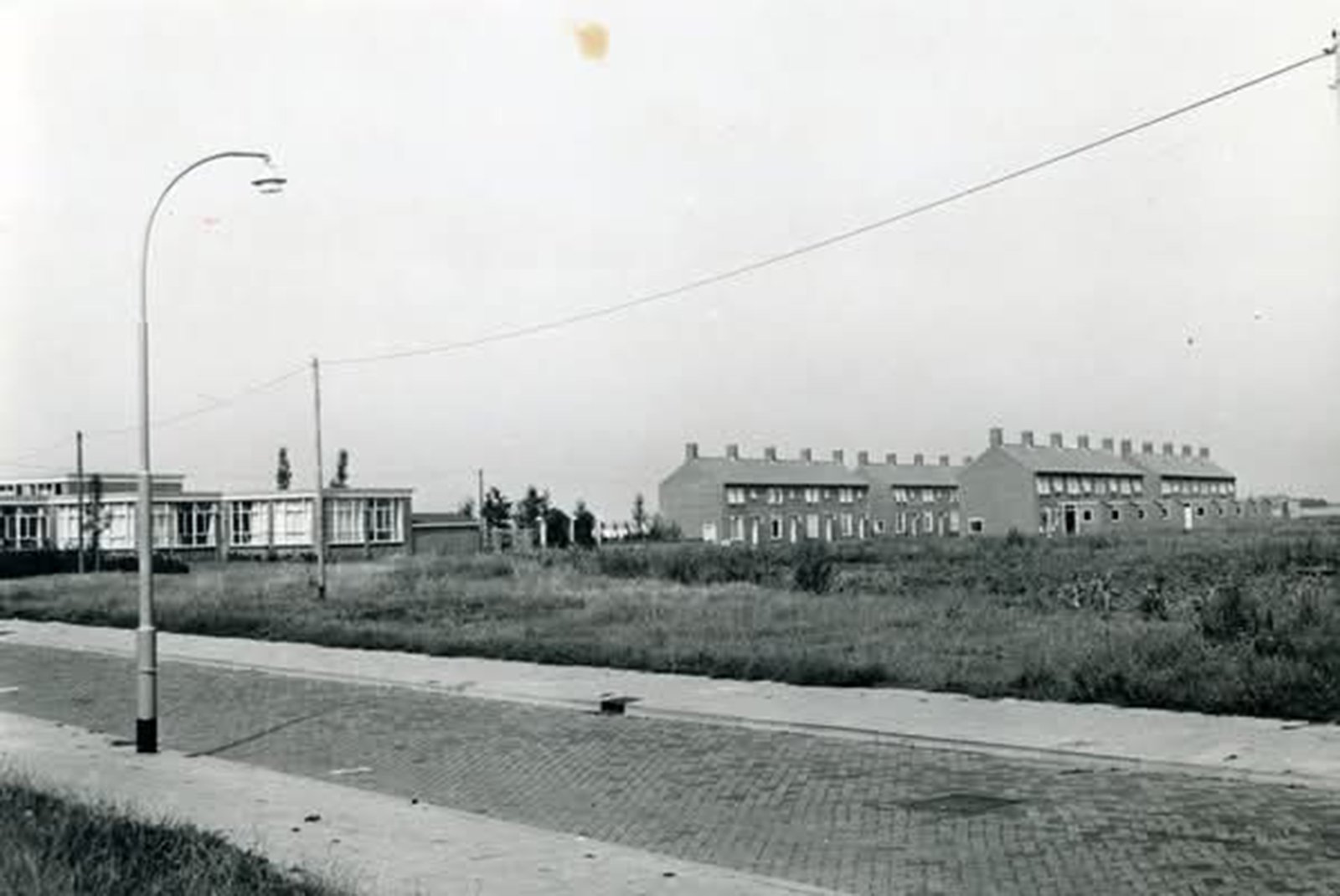 Parklaan 1955 links HW.school de woningen staan aan de Huizinga laan